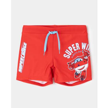 Красные плавки для мальчика Super Wings с цветным принтом.