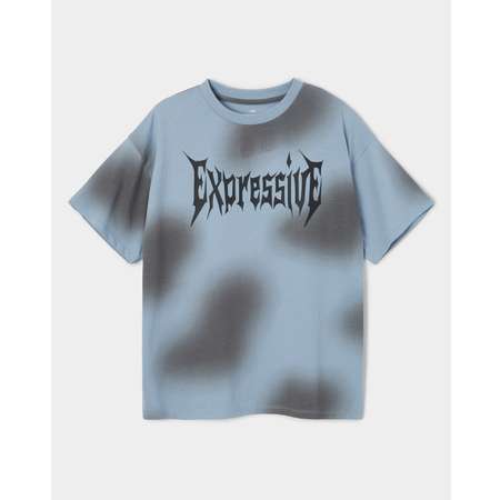 Футболка в голубом цвете для мальчика Futurino, декорированная контрастным принтом с надписью "Expressive".
