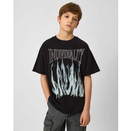 Чёрная футболка для мальчика Futurino, декорированная контрастным принтом с надписью "Individuality".