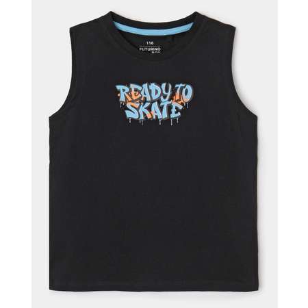 Чёрная летняя майка для мальчика Futurino, декорированная с двух сторон ярким цветным принтом.