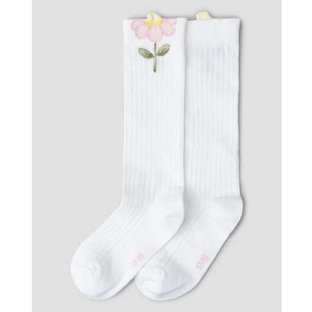 Гольфы для девочки Futurino белого цвете в рубчик, с цветочным декором.