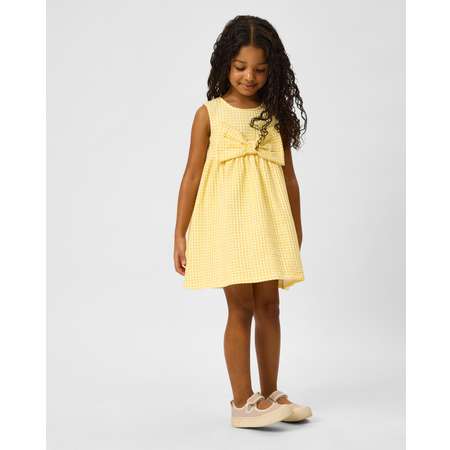 Жёлтый клетчатый сарафан для девочки Futurino, декорированный объёмным бантиком.