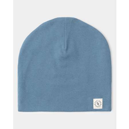 Синяя шапка для мальчика BabyGo, декорированная нашивкой.
