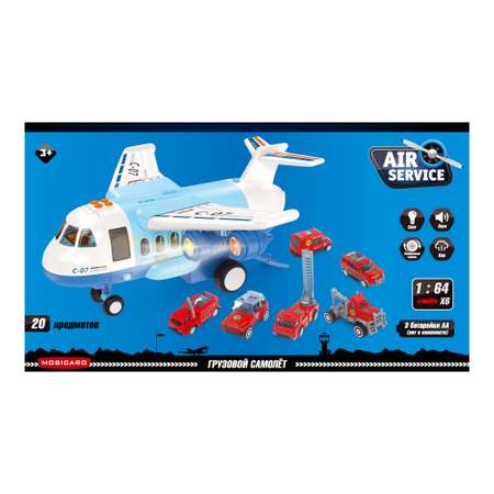 Грузовой самолёт с парковкой Mobicaro –– это инерционная игрушка со светом, звуком и настоящим паром. Залейте воду в отсек, нажмите на корпус, и самолёт эффектно выпустит облачко дыма, словно готовится к взлёту.