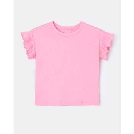 Розовая футболка для девочки Futurino с блёстками и оборками на рукавах.