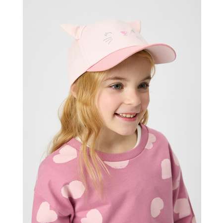 Светло-розовая кепка для девочки Futurino с блестящим козырьком и декором в виде котёнка с объёмными ушками.