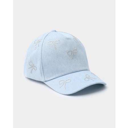 Голубая кепка для девочки Futurino с декором из страз в виде бантиков.