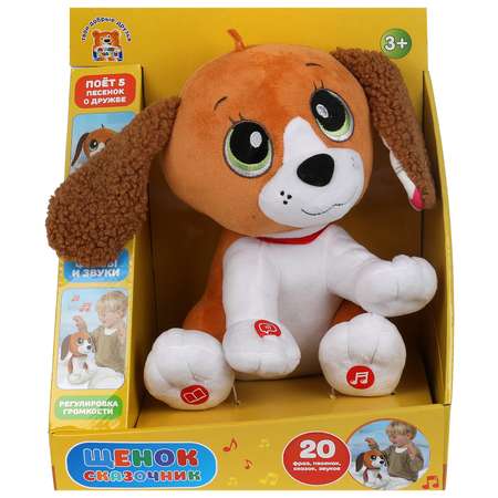 Малыш будет в восторге от этого очаровательного и очень мягкого щенка, которого так приятно обнимать. У игрушки милая мордочка с вышитыми глазками. Щенок выполняет несколько развивающих функций, он станет для ребёнка хорошим учителем и добрым другом, который споёт песенки и расскажет интересные сказки.