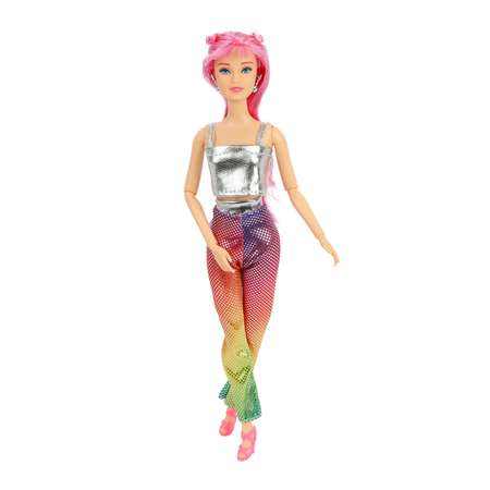 Модница София одета в серебристый топ и яркие брюки из блестящей ткани. Образ дополняют элегантные серьги. Одежду и аксессуары легко снять и надеть. С такой модной куклой девочке будет интересно и весело играть: благодаря тому, что руки и ноги куклы подвижны, им можно придать любое положение. У Софии длинные красивые волосы, которые хозяйка куклы сможет заплетать в разные причёски. Детально проработанный дизайн игрушки вдохновит девочку на множество увлекательных игровых сюжетов.