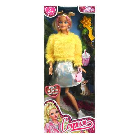 Очаровательная София одета в жёлтый пушистый свитер и кожаную юбку серебристого цвета, на ногах стильные белые ботинки. Образ дополняют милые серьги-кольца и сумочка оригинальной формы. Одежду и аксессуары легко снять и надеть. С такой модной куклой девочке будет интересно и весело играть: благодаря тому, что руки и ноги куклы подвижны, им можно придать любое положение. У Софии длинные красивые волосы с розовыми прядями, которые хозяйка куклы сможет заплетать в разные причёски. Детально проработанный дизайн игрушки вдохновит девочку на множество увлекательных игровых сюжетов.
