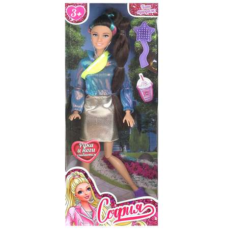 Модница София одета в кофту из блестящей ткани и стильную юбку. Образ дополняют элегантные серьги, колье и яркая сумочка. Одежду и аксессуары легко снять и надеть. С такой модной куклой девочке будет интересно и весело играть: благодаря тому, что руки и ноги куклы подвижны, им можно придать любое положение. У Софии длинные красивые волосы, которые хозяйка куклы сможет заплетать в разные причёски. Детально проработанный дизайн игрушки вдохновит девочку на новые игровые сюжеты.
