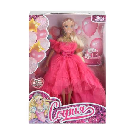 Прекрасная именинница София одета в пышное ярко-розовое платье с ассиметричным подолом и оригинальными рукавами. Образ куколки дополняют изящные серьги, крупное ожерелье и браслет. Одежду и аксессуары легко снять и надеть. С такой модной куклой девочке будет интересно и весело играть: благодаря тому, что руки и ноги куклы подвижны, им можно придать любое положение. У Софии очень длинные красивые волосы, которые её хозяйка сможет заплетать в разные причёски. Детально проработанный дизайн игрушки вдохновит девочку на новые игровые сюжеты.