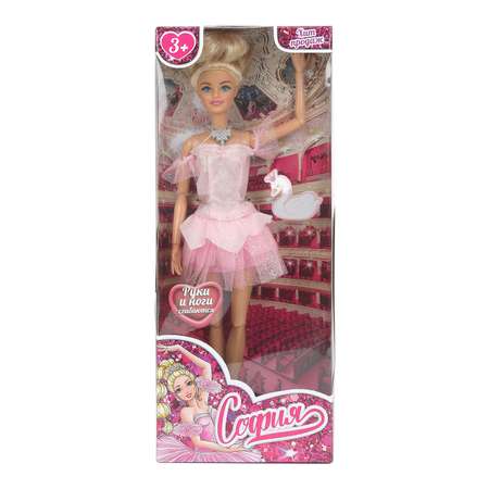Прима-балерина София одета в сверкающую розовую пачку. Образ дополняет изящное колье. Одежду и аксессуары легко снять и надеть. С такой модной куклой девочке будет интересно и весело играть: благодаря тому, что руки и ноги куклы подвижны, им можно придать любое положение. У Софии длинные красивые волосы, которые собраны в высокую причёску. При желании хозяйка куклы сможет расплести их и заплетать в разные причёски. Детально проработанный дизайн игрушки вдохновит девочку на новые игровые сюжеты.