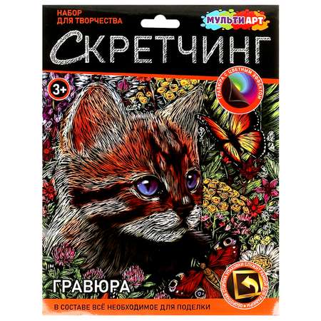 Набор для творчества — скретчинг гравюра «Котик с бабочкой» ТМ «Мульти Арт» — отличный подарок для ребёнка, который будет способствовать развитию его творческих способностей: