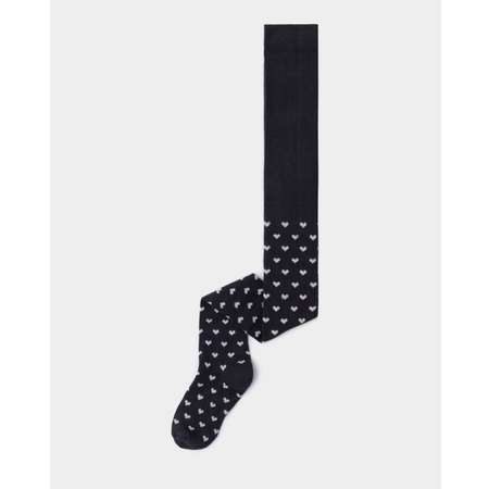 Тёмно-серые колготки для девочки BabyGo с узором "сердечки".