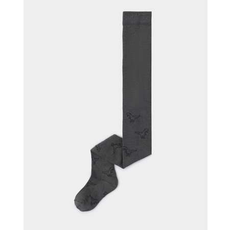 Тёмно-серые колготки для мальчика BabyGо, декорированные принтом с динозаврами.