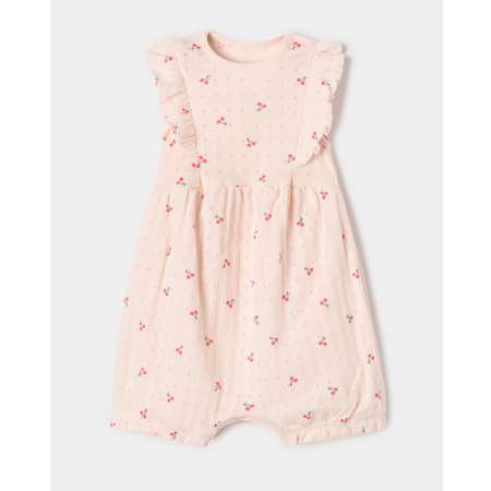 Ажурный розовый песочник для девочки Моя Горошинка, декорированный оборками и принтом с вишенками.