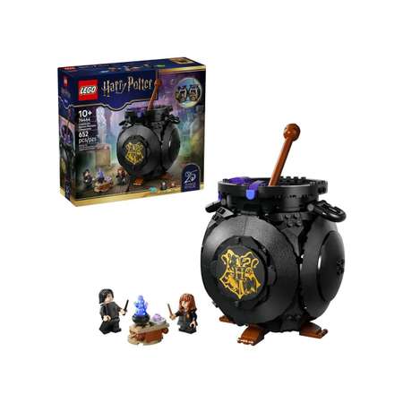 Конструктор LEGO Harry Potter приглашает раскрыть тайные зельеварения и собрать пузырящийся волшебный котёл, внутри которого скрывается целый класс! Если повернуть черпак, откроется секретное помещение со съёмными столами, школьной доской, бутылочками для зелий и ингредиентами для создания оборотного зелья, зелья любви и волчьего корня.