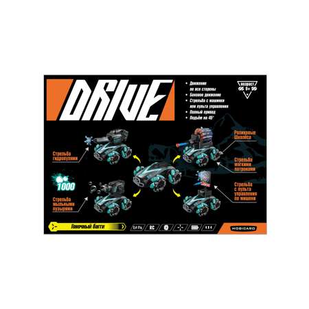 Радиоуправляемая машинка Mobicaro — идеальный выбор для захватывающих сражений с друзьями и весёлых игр на свежем воздухе! Устанавливайте на машинку или пульт управления разные насадки и поражайте мишень с невероятной точностью.